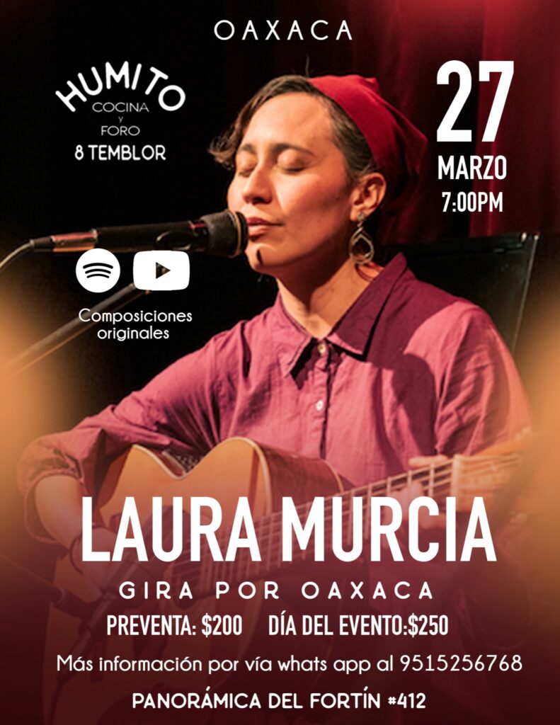 Soy Laura Murcia, una cantautora mexicana dedicada desde siempre a la música. Hace 20 años que inicié mi formación musical, pero en los últimos 12 me he enfocado en componer y cantar mis canciones. En ellas encuentro una forma de contar historias: pequeños espacios habitables para lo que pienso y siento. Reflexiono sobre mi propia humanidad, imagino viajes y me inspiro en personajes de la cotidianidad con vivencias más allá de los márgenes. Mi voz habla por mí y me hace única. Mi guitarra es un lienzo de la artesanía con la que trazo los arpegios y acordes con un dibujo especial. Desde 2016 me dedico profesionalmente a la composición de canciones y en 2017 lancé mi primer álbum, que presenté en 8 países de Latinoamérica. Después de estos años de investigación artística y transformación personal, estoy grabando «Laura Murcia», mi segundo álbum, que verá la luz este 2026…